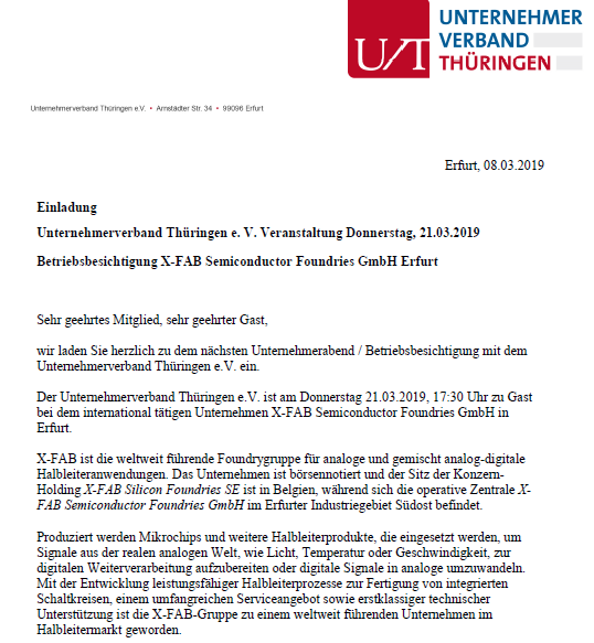 21.03.2019 – Betriebsbesichtigung X-FAB Foundries GmbH Erfurt
