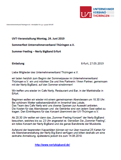 Sommerfest 2019 – Unternehmerverband Thüringen e.V. – 24.06.2019 2019-05-27 Sommerfest UV-Thüringen 2019 – 24. Juni 2019